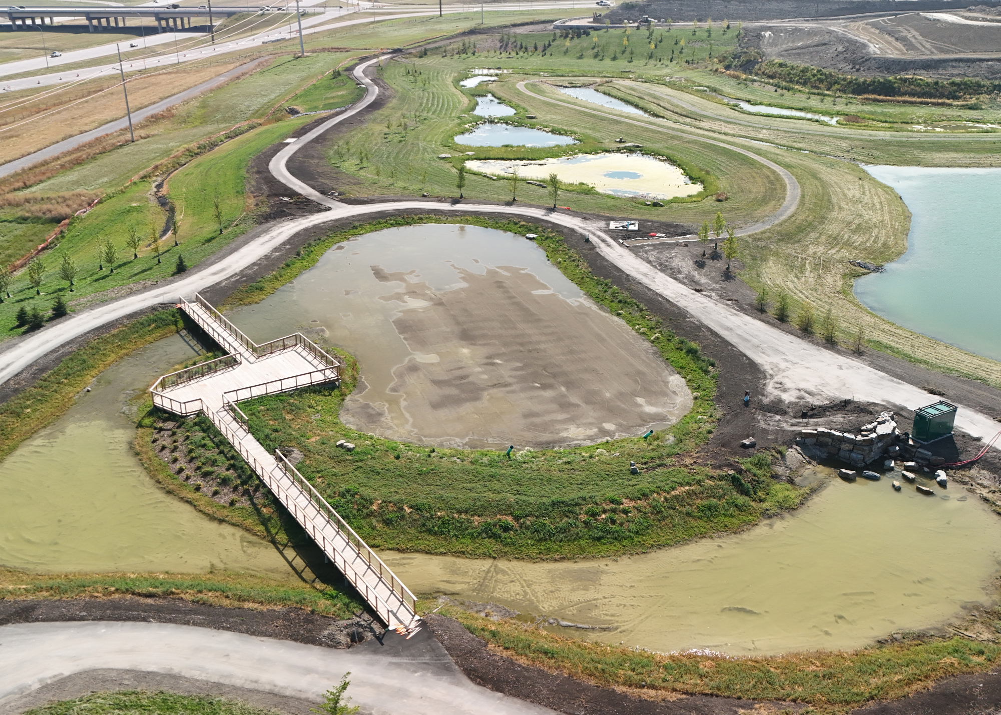 Together, they developed the Alpine Park MAGNA Stormpark™, a nature-based stormwater system designed to manage large storm events while improving water quality. The system combines sediment forebays, storage ponds, treatment wetlands, and biofilters that use plants, layered soils, and microbial processes to clean runoff before it enters the surrounding environment.